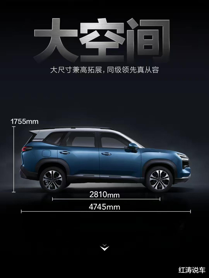五菱星光560的长宽高分别为4745*1850*1755毫米,轴距达到了2810毫米,虽然五菱谦虚的把它放入了紧凑型SUV级别,但这样的尺寸比一些入门中型SUV还要大,属于越级的表现,黑色行李架、宽大的黑色轮眉、黑色侧裙以及前后翼子板上方隆起的线条等,营造出一定的野性和力量感!而18英寸的双色轮毂并不算小,可能是由于车身拉的太大了,导致有点大身子小脚,不是特别协调,你们觉得呢?