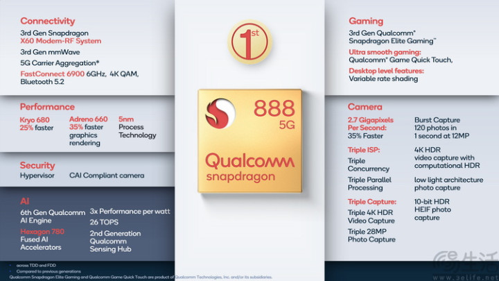 这一点,对于手机里的NPU来说似乎也是成立的。比如以高通为例,2019年的骁龙855是首款公开宣传NPU算力的产品,当时它的算力是7TOPs。之后换代的骁龙865、骁龙888、骁龙8 Gen1官方都有公布这一数据,分别是15TOPs、26TOPs、52TOPs。