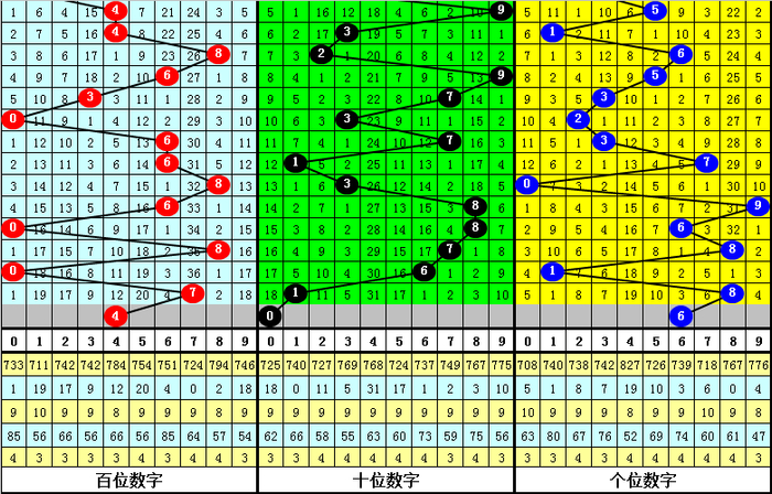 其中,百位奇偶比为4:4,大小比为4:4,本期百位一码参考4。