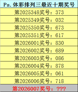 钱哥体彩排列三第2026007期推荐:类型——组六